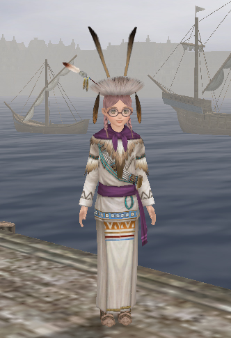 長~い羽根が特徴のアタマは「フェザーアクセサリー」という帽子で、繊維取引+1。